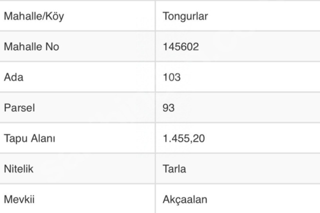 TOPLAM 1455 M2 OLUP TARLA VASFINDADIR.